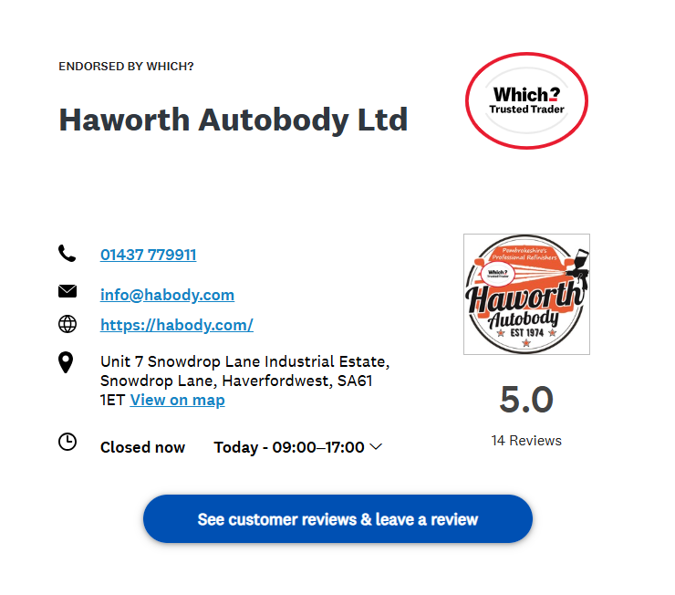 Your feedback helps reflect the quality of workmanship and customer service we aim to deliver every day. We’re proud to be a Which? Trusted Trader, and your honest reviews help other local drivers choose a repairer they can trust.